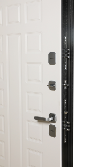 терморазрыв на полотне и на коробе, 3 контура уплотнения, петли 3 шт., противосъемные штыри 3 шт., ночная задвижка, фурнитура хром, замки 2 шт. (сувальдный), 5 ключей