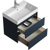 Тумба Aqwella Geometria 65 оснащена двумя выдвижными ящиками на направляющих скрытого монтажа, что обеспечивает плавное скольжение и мягкое закрывание. Фасады и боковины с обработкой торцов под углом 45 градусов создают лаконичность и изящный, почти монолитный силуэт в закрытом состоянии. Все грани имеют округлую фрезеровку, обеспечивая приятные тактильные ощущения при открывании. Внутри ящиков - отделка под светлый камень, боковины выполнены из толстого тонированного стекла, что добавляет коллекции элегантности.