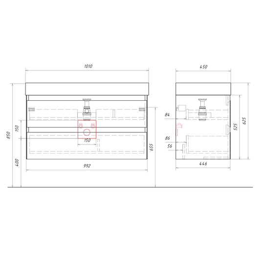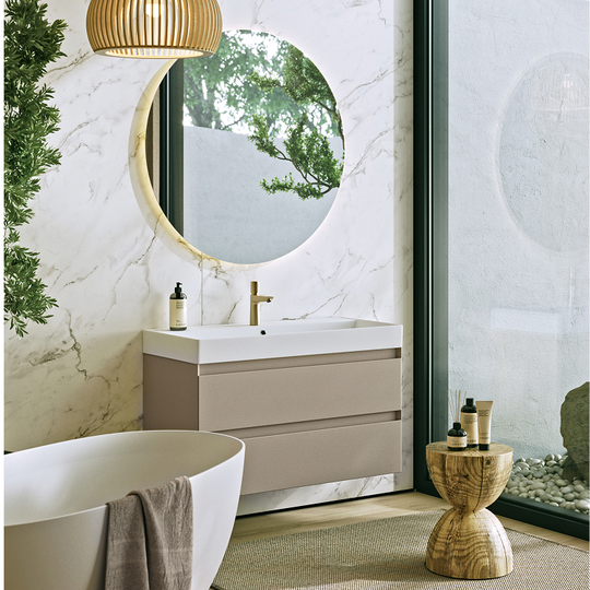 Тумба Aqwella Geometria 100 оснащена двумя выдвижными ящиками на направляющих скрытого монтажа, что обеспечивает плавное скольжение и мягкое закрывание. Фасады и боковины с обработкой торцов под углом 45 градусов создают лаконичность и изящный, почти монолитный силуэт в закрытом состоянии. Все грани имеют округлую фрезеровку, обеспечивая приятные тактильные ощущения при открывании. Внутри ящиков - отделка под светлый камень, боковины выполнены из толстого тонированного стекла, что добавляет коллекции элегантности.