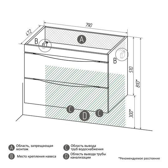 | Тумба с раковиной Grossman Виста 80 белый глянец подвесная |