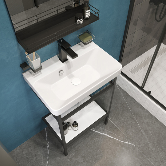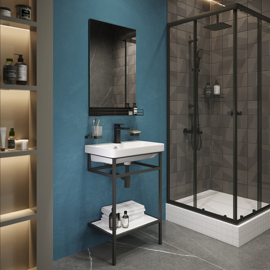 - Консоль Stworki Эстфолл 55 цвет "черный муар" с раковиной Stworki Эстфолл 55.