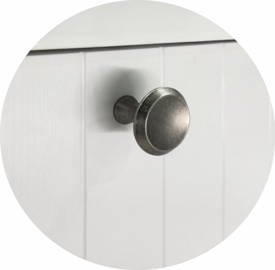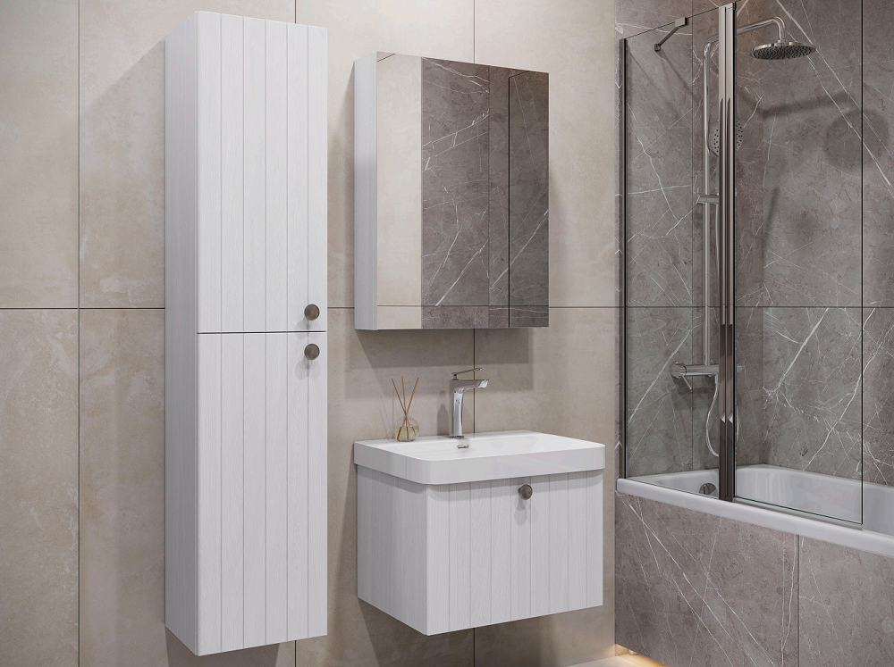 Пенал для ванной Истра 35 с двумя створками. Петли створок оснащены механизмами плавного закрывания. Фасады пенала изготовлены из МДФ, фрезерованы вертикальным узором и облицованы пленкой имитирующей текстуру дерева ясень беленый. Полки из влагостойкого ЛДСП регулируются по высоте. Ручки из цинкового сплава в цвете состаренный черненый. Шкаф-колонна может быть подвешена с правым или левым расположением петель. Для выбора ориентации колонну нужно перевернуть.