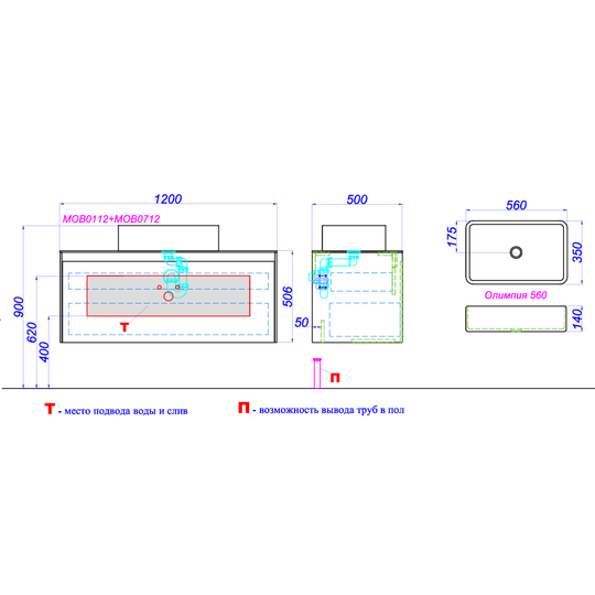 Тумба Mobi 120 оснащена двумя ящиками: основным и внутренним, скрытым за фасадом. Направляющие ящиков обеспечивают плавное и мягкое закрывание. Внутренний ящик тумб укомплектован пластиковым разделителем для хранения различных мелочей. Внутренняя отделка ящиков комбинированная: боковины – цвет бетон светлый, дно – дуб балтийский. В комплект тумбы Mobi входит специальный сифон, позволяющий экономить пространство мебели. Фасады, боковины и столешницы из МДФ толщиной всего 10 мм. Подходит любой наставной умывальник. При этом умывальник может устанавливаться в любом месте, а не только центру. На данную тумбу также можно установить один умывальник. Коллекция оснащена итальянскими навесами Camar, которые выдерживают нагрузку до 200 кг.