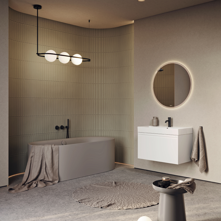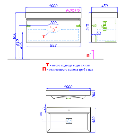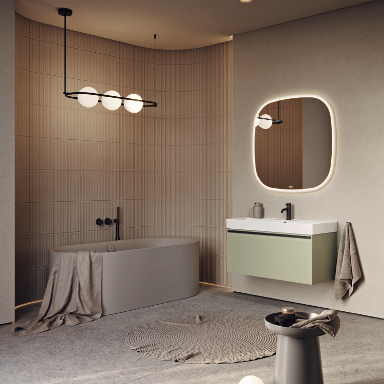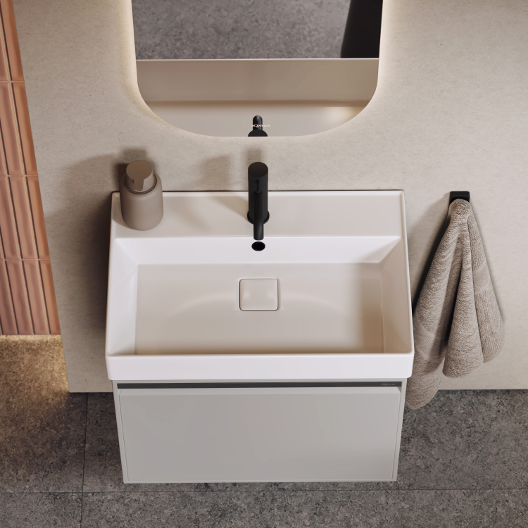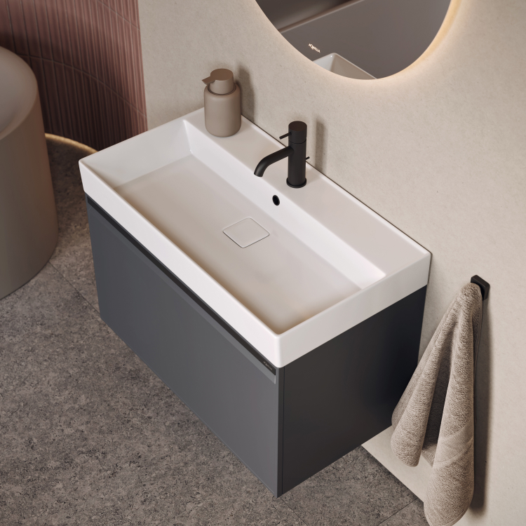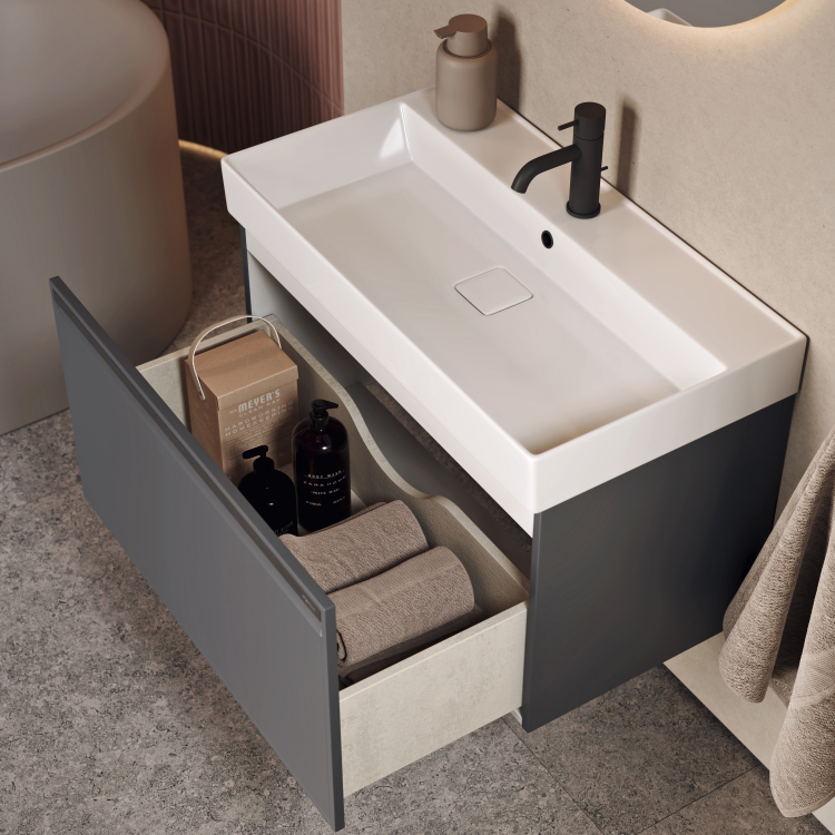 Тумба Pure 100 оснащена одним ящиком с плавным скольжением и мягким закрыванием.