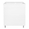 Тумба Эстима 70/2Н оснащена двумя выдвижными ящиками на доводчиках скрытого монтажа. Установлена на хромированные ножки. Корпус изготовлен из ЛДСП, фасады МДФ толщиной 16 мм. Корпус и фасады производства Kronospan. Бока и фасады крашеные итальянской эмалью.