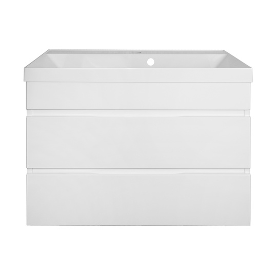 Тумба Эстима 80/2 оснащена двумя выдвижными ящиками на доводчиках скрытого монтажа. Корпус изготовлен из ЛДСП, фасады МДФ толщиной 16 мм. Корпус и фасады производства Kronospan. Бока и фасады крашеные итальянской эмалью.