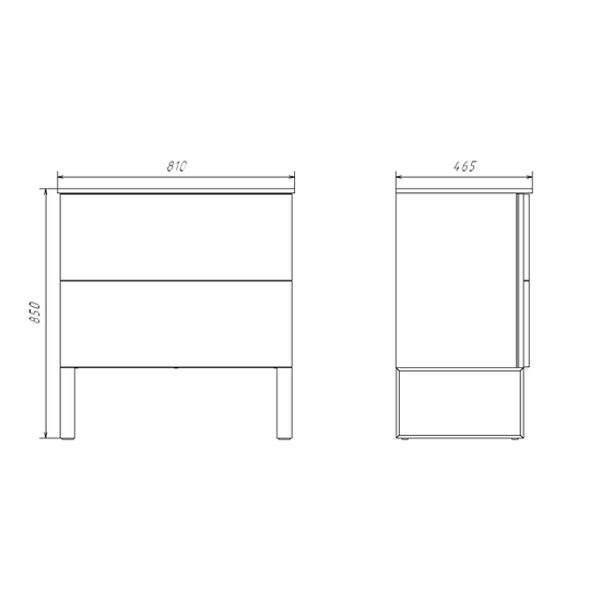 Напольная тумба с двумя ящиками, оборудованными направляющими с системой плавного закрывания. Открытие ящиков производится при помощи вертикальных профильных ручек, интегрированных в боковые стенки тумбы. Ножки тумбы из металла защищены от воздействия влаги порошковой покраской. Тумбу можно использовать как подвесную, если не использовать ножки.