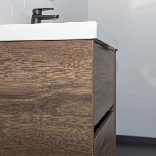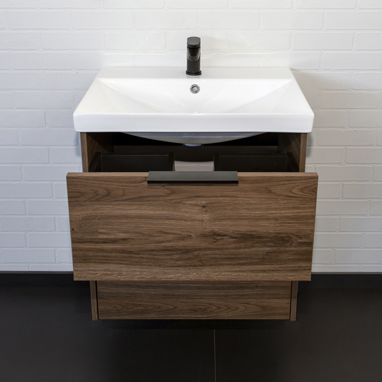 Подвесная тумба Comforty Селенга 50 с двумя вместительными выдвижными ящиками. Направляющие ящиков оборудованы системой плавного закрывания. Верхний ящик открывается черной профильной ручкой. Ручку устанавливать необязательно. Верхний ящик можно открыть за нижний край фасада. Для открытия нижнего ящика нужно потянуть верхний край фасада. Ящики выполнены из ВЛДСП контрастного черного цвета. Тумба подготовлена для подключению коммуникаций снизу и сзади.