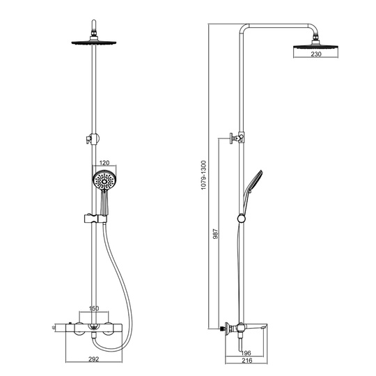 верхний душ, душевая лейка, душевая штанга, пластиковый душевой шланг, эксцентрики, смеситель