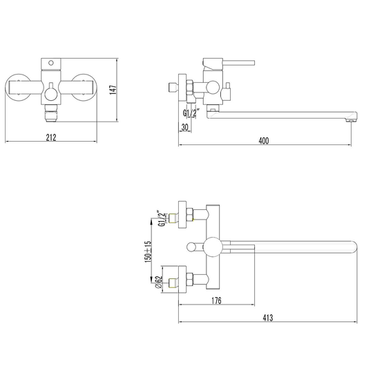 смеситель, лейка (АБС пластик), металлический шланг в двойной оплетке, настенный держатель, комплект эксцентриков, монтажный комплект